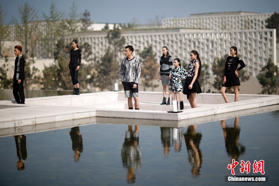 Models present creations of Taiwan designer Gioia Pan in an outdoor show of the 2015 Qingdao Fashion Week on April 26, 2015. (Chinanews/Sheng Jiapeng)
