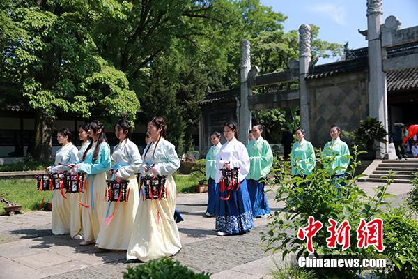 A grand archery ceremony was held in Suzhou, east China’s Jiangsu province to welcome the upcoming 57th World Table Tennis Championship on April 26, 2015. (Chinanews/Tang Yuwei)