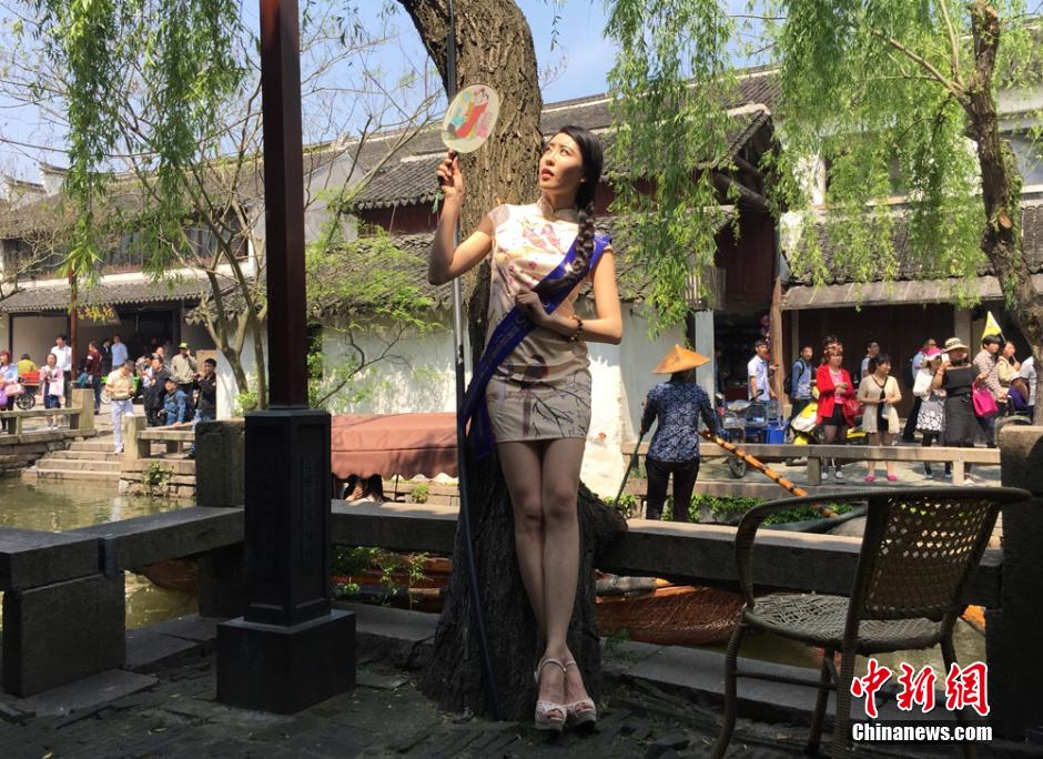 Yulia, Zhang Jinxiao and other supermodels appear in Zhouzhuang, east China's Jiangsu Province On April 23, 2015. Yulia is the winner of the World Super Model Contest Global Finals. (Chinanews.com/Huang Ying)
