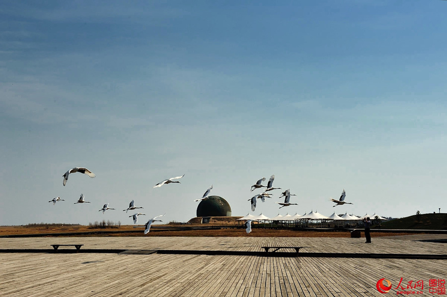 The red-crowned crane is a beautiful and precious bird. According to statistics, by the end of 2010, there were only 1,500 red-crowned cranes in the world and 1,000 of them would spend the winter in China. In Zhalong wetland in Qiqihar, northeast China’s Heilongjiang province, a nature protection area has been established to better protect the red-crowned crane. (Photo source: people.cn)
