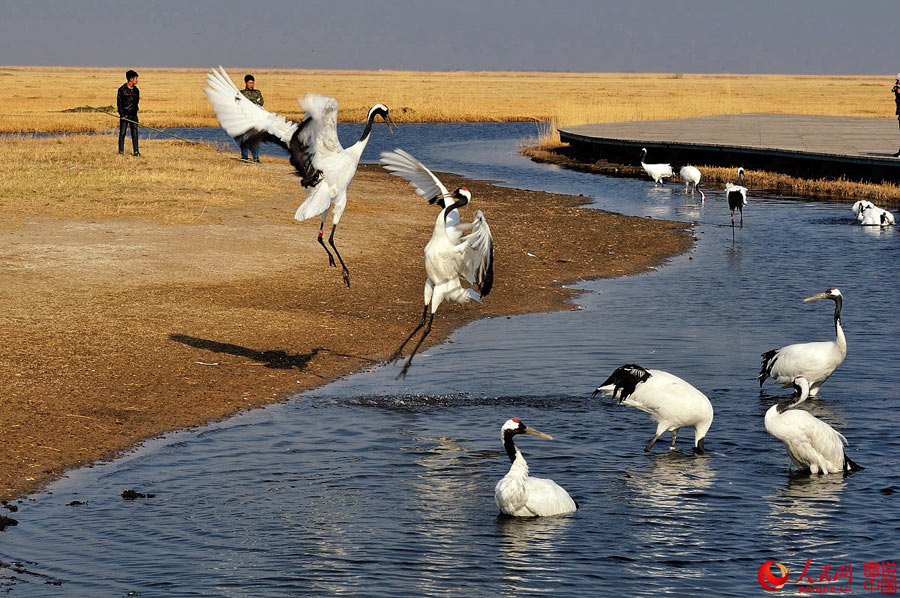 The red-crowned crane is a beautiful and precious bird. According to statistics, by the end of 2010, there were only 1,500 red-crowned cranes in the world and 1,000 of them would spend the winter in China. In Zhalong wetland in Qiqihar, northeast China’s Heilongjiang province, a nature protection area has been established to better protect the red-crowned crane. (Photo source: people.cn)