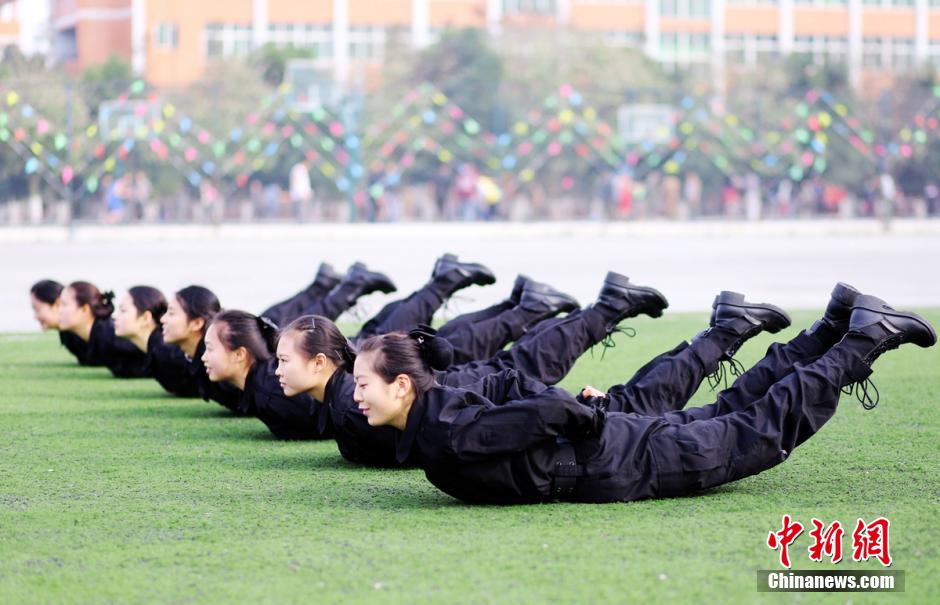 Students of the aviation major of an institute in Chengdu, Sichuan Province have intensified their training recently. Besides professional lessons such as etiquette, they learn catching and grappling. They are required to master the skill to break a bowl and cut a brick with one hand. The training aims to turn them to tough girls who can give the enemy a deadly blow in one hit. (CNS Photo)