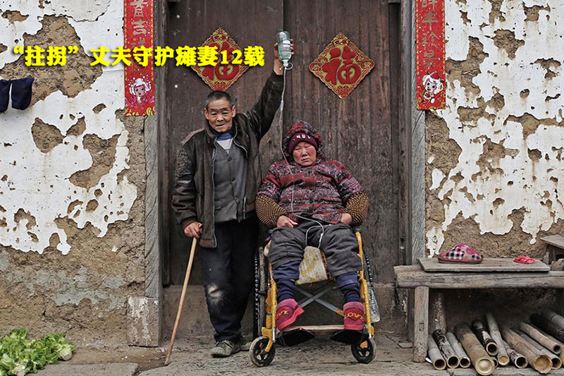 Chen Xinzhen, a women in Sixi village of Hubei province, became paralyzed in an accident 12 years ago. Her husband, Fu Chengquan, has been taking care of her since then. Many villagers were touched by the love between the couple and gave them helps.