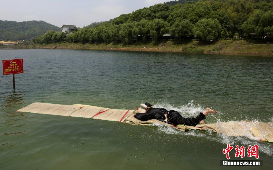 A competitor dressed as a pig fails in the challenge. (CNS/Yang Huafeng)