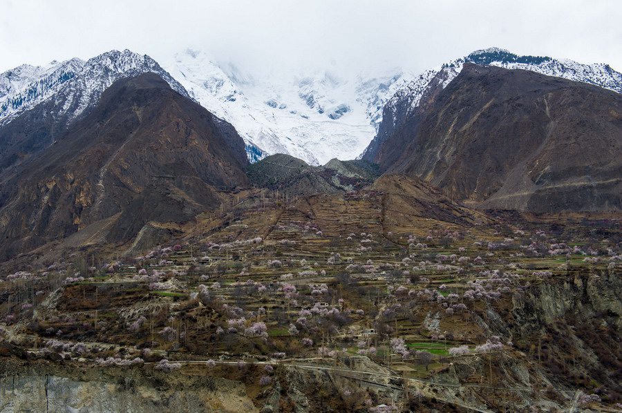 Apricot blossoms along valleys of Gilgit, northernmost administrative territory of Pakistan, March 24, 2015. (Xinhua/Huang Zongzhi)
