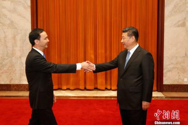 | Xi Jinping, general secretary of the Communist Party of China Central Committee, met Kuomintang (KMT) Chairman Eric Chu on May 4. (Photo source: Chinanews) |