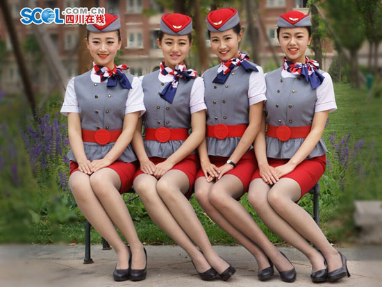Two pairs of twin sisters are trained to be cabin attendants at the Sichuan Southwest College of Civil Aviation. Yan Huihui and Yan Cuicui are twin sisters; so are Yang Zhuojun and Yang Zhuolin. They have been recruited as cabin attendants by China Southern Airliners. (SCOL.com.cn/Yang De)
