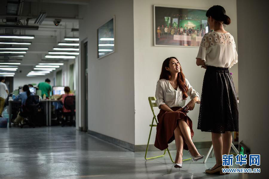 Yan Zi(left) regularly works with the company and the staff in charge of the anchors to hear about the latest requirements of the company and to be kept up to date on the latest information about the demographics of her fan base. (Xinhua/Liu Dawei)