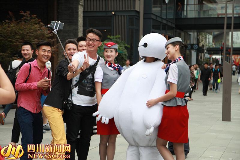 | More than 20 future flight attendants stage a flash mob show in Chengdu, capital of southwest China's Sichuan province, May 3, 2015. (Photo/newssc.org) |