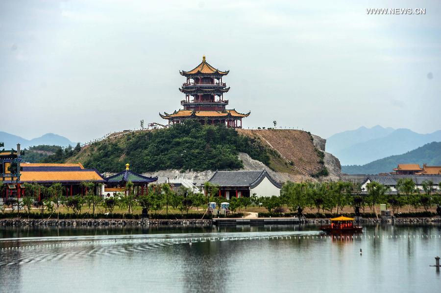 Photo taken on May 5, 2015 shows the scenery inside the newly-built "Old Summer Palace", also known as "Yuanmingyuan", in the Hengdian World Studios in Dongyang, east China's Zhejiang Province. The first phase of the construction of a new "Old Summer Palace" same sized with the original one in Beijing has been completed. Chunyuan, one of the four major gardens in the Palace occupying most areas, is expected to be open to the public on May 10, 2015. With a total investment of 30 billion yuan (about 4.8 billion U.S. dollars). the rest three gardens will be completed in 2016. (Xinhua/Xu Yu)