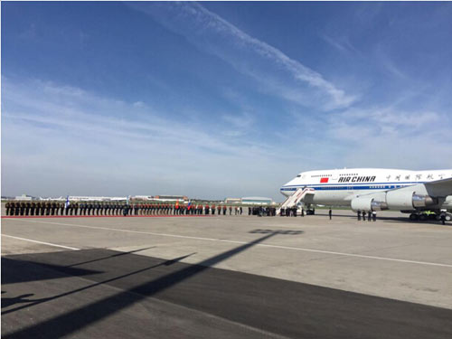 A welcome ceremony was held at airport. Xi inspected Russia's three-service guards of honor.