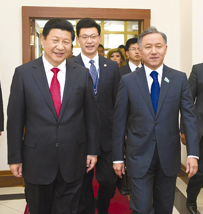 Xi met with Nurlan Nigmatulin, speaker of Kazakh Parliament's Lower House in Astana. Xi said cooperation between the two countries' legislatures is an important part of the China-Kazakhstan comprehensive strategic partnership. He called on the two sides to expand friendly exchanges, share experience, and learn from each other in such fields as governance, democracy and rule of law, so as to support and boost cooperation between China and Kazakhstan.