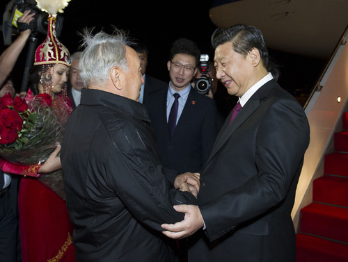 | On Sept. 6, 2013, President of Kazakhstan Nursultan Nazarbayev went in person to the airport in Astana to receive Chinese President Xi Jinping. |