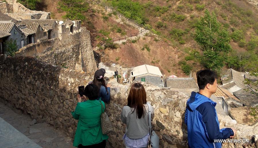 | Tourists visit Chuandixia village on the outskirts of Beijing, capital of China, May 9, 2015. Chuandixia village, a mountainous village built in the Ming and Qing dynasties, is listed as the cultural heritage under the key protection of Beijing. The residential buildings in the village have maintained the original housing style. (Xinhua/Li Xin) |