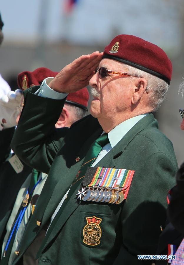 People attend a commemorative event to mark the 70th anniversary of World War II victory in Europe in downtown Ottawa, Canada, May 8, 2015. (Xinhua/Li Baodong)