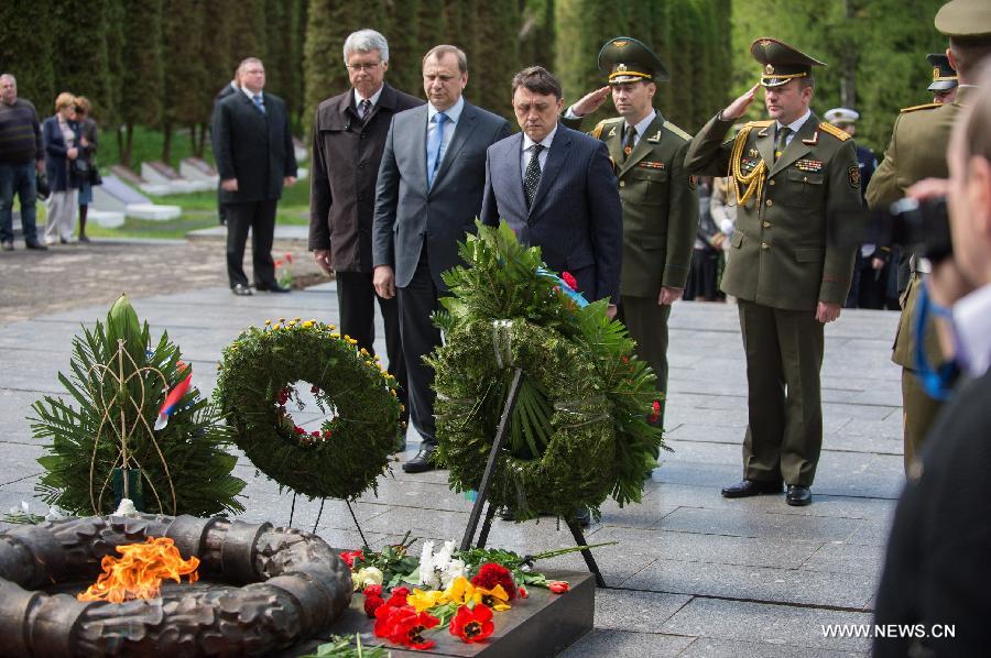 People attend the commemoration marking the 70th anniversary of World War II victory in Europe in Vilnius, Lithuania, on May 8, 2015. (Xinhua/Alfredas Pliadis)