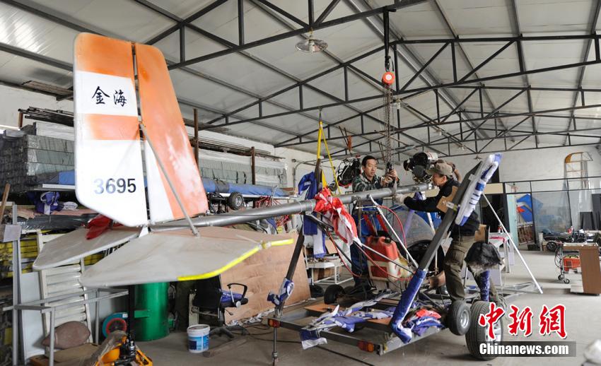 45-year-old Yang Shijun successfully flies his self-made light plane to the height of 200 meters in Changchun, northeast China’s Jilin province on May 10, 2015. His plane had made two trail flights previously. After the flight in May 10, the plane had completed 2.5 hours flight time and 10 taking-offs and landings. According to Yang, he and his friends are making three two-seater planes now, so as to enjoy more fun of flying. (Chinanews/Zhang Yao)