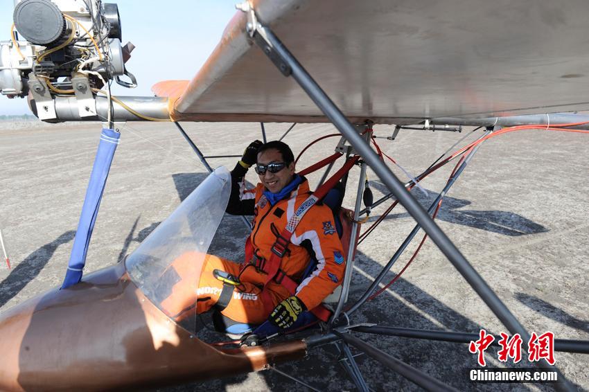 45-year-old Yang Shijun successfully flies his self-made light plane to the height of 200 meters in Changchun, northeast China’s Jilin province on May 10, 2015. His plane had made two trail flights previously. After the flight in May 10, the plane had completed 2.5 hours flight time and 10 taking-offs and landings. According to Yang, he and his friends are making three two-seater planes now, so as to enjoy more fun of flying. (Chinanews/Zhang Yao)