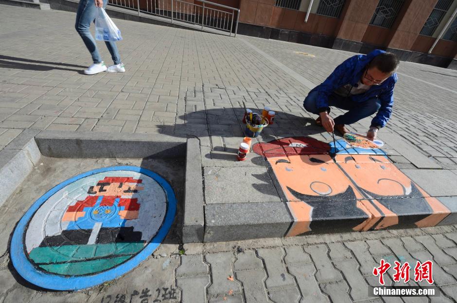 On the campus of Huhhot University for Nationalities, students drew cartoon figures like Baymax, Doraemon, and Garfield on manhole covers and stone pillars, which attracted a lot of attention.