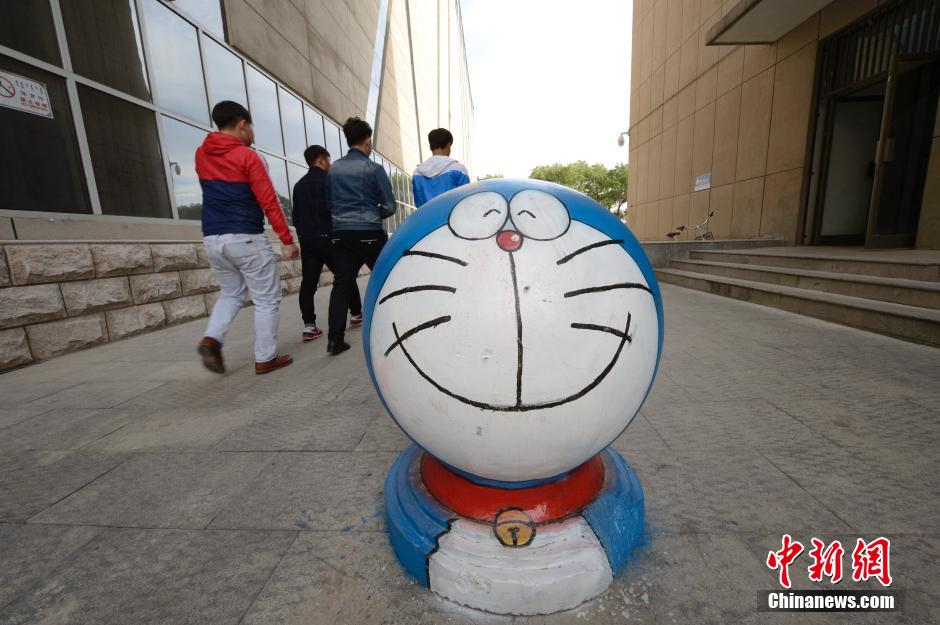 On the campus of Huhhot University for Nationalities, students drew cartoon figures like Baymax, Doraemon, and Garfield on manhole covers and stone pillars, which attracted a lot of attention.
