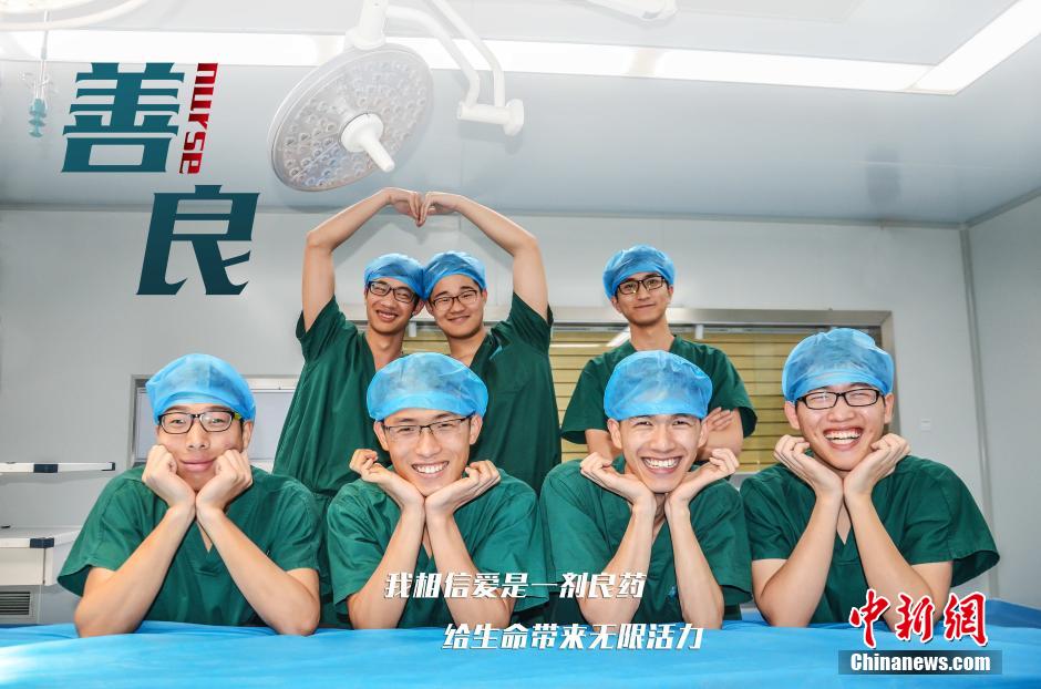 To commemorate the International Nurses Day, dozens of post-90s male nurses-to-be of the medical school at Jinhua Polytechnic shot a series of poster photos. Today, more and more men have chosen to be nurses, and they are very proud of their jobs. (Chinanews/Lu Huiping)