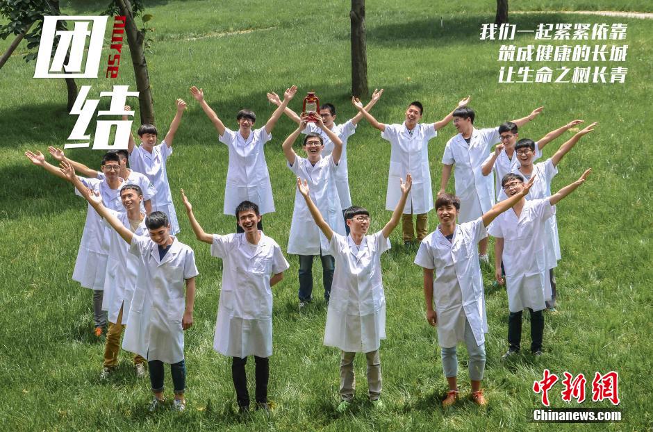 To commemorate the International Nurses Day, dozens of post-90s male nurses-to-be of the medical school at Jinhua Polytechnic shot a series of poster photos. Today, more and more men have chosen to be nurses, and they are very proud of their jobs. (Chinanews/Lu Huiping)