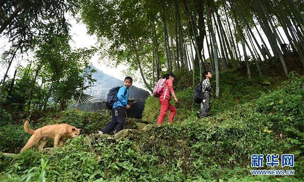 Yang Zhanyi(right) and Yang Yvqi(mid) and Yang Dongchao on their way home after school.