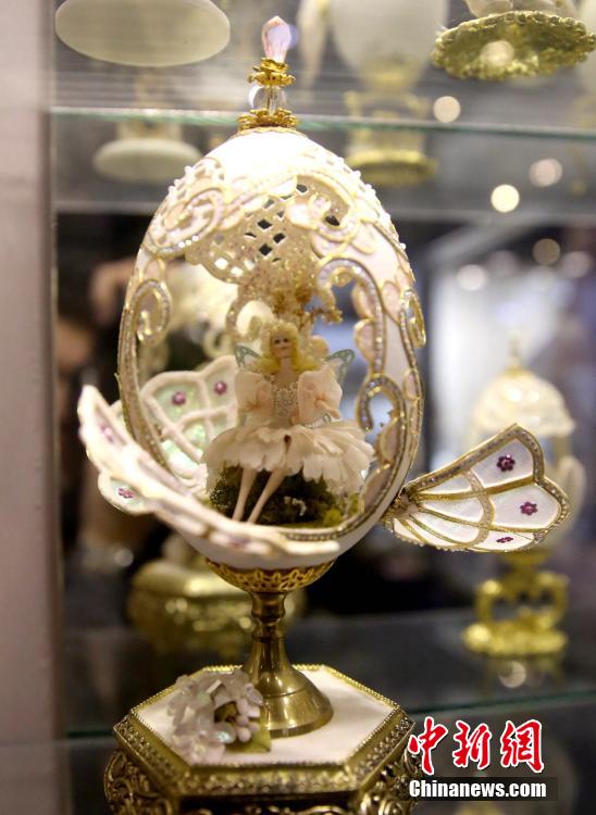 An egg shell craftwork displayed in the Miniature Museum of Taiwan. (CNS/Chen Xiaoyuan)