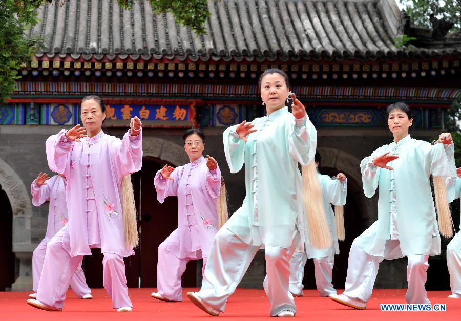 | Participants perform Taichi during a Taichi national contest in Beijing, capital of China, May 15, 2015. (Xinhua/Gong Lei) |