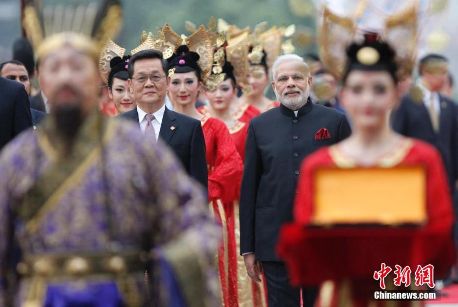 Traditional welcoming ceremony held for Modi in Xi'an (2)