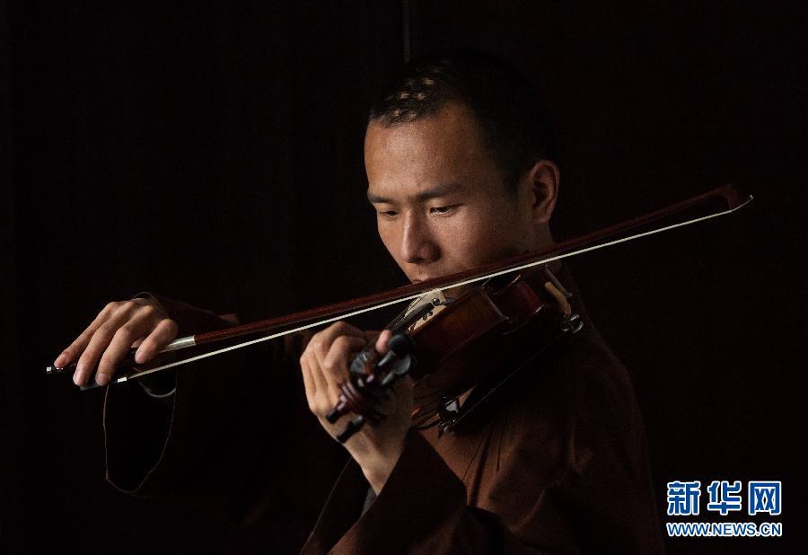 Located in central China’s Hubei province, Tiantai Temple is famous for its Buddhist music. Young Buddhist monks and nuns play beautiful music with violins, cellos, pianos and other instruments. Playing Buddhist music is their way of self-cultivation. In 2008, Tiantai Temple formed its own band – Guangxuan Art Troupe, which now has over 40 members. The band is often invited to perform music and spread Buddhism outside the temple. (Xinhua/Cheng Min)