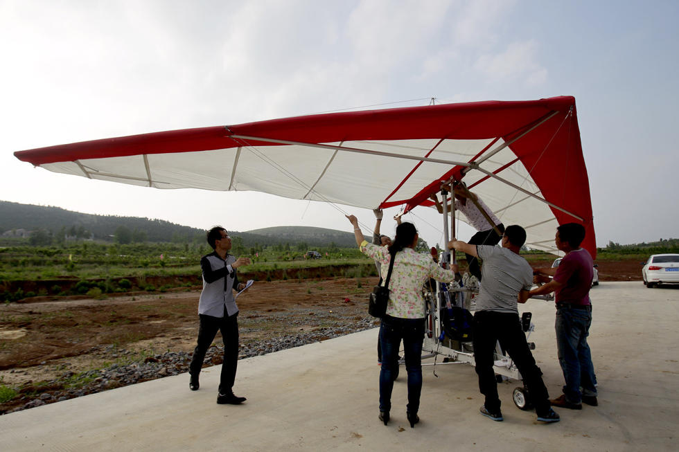 The installation of the delta wing requires the joint effort of several people. (Photo/ Youth.cn)
