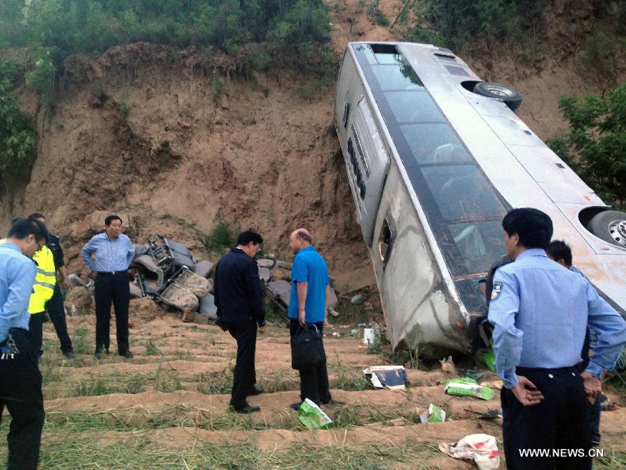 The accident happened at 3:27 p.m., when a bus carrying 46 plunged 30 meters into a ravine in Chunhua county, said an official with the county's publicity office.