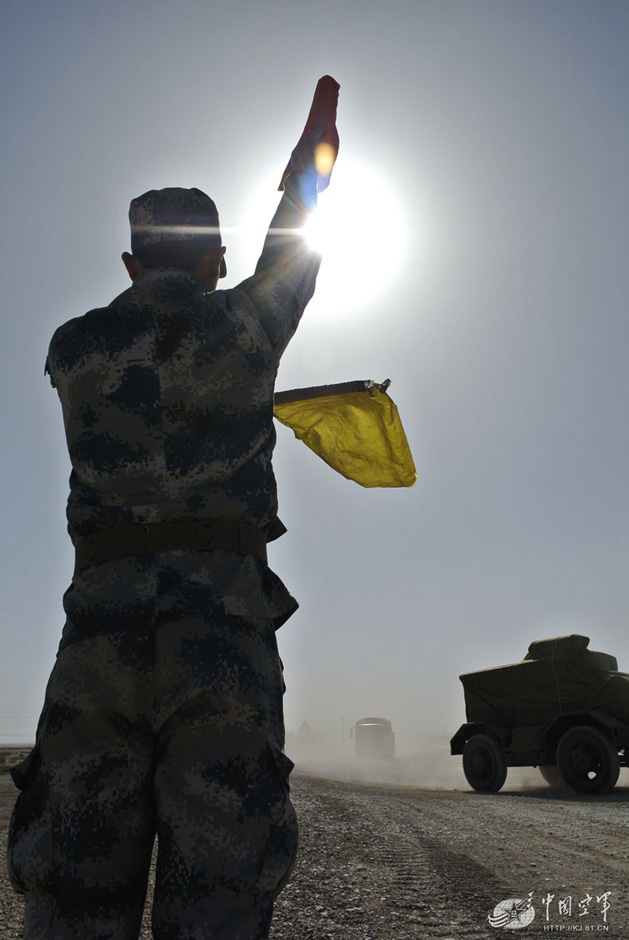 Antiaircraft guns fire a salvo at "enemies" in a drill. In early May 2015, an air defense regiment of Beijing Military Region successfully conducts a day and night maneuvering drill in the desert in northwest China. (Photo source: kj.81.cn)
