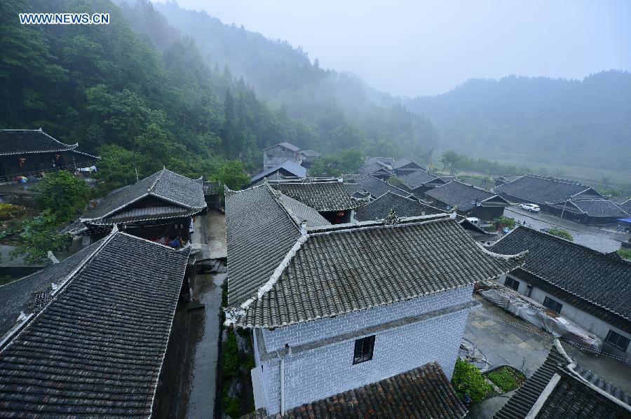 Photo taken on May 17, 2015 shows a stream in Yangmei ancient village of Laifeng County, central China's Hubei Province. The ancient village, with a history of hundreds of years, was named after its rich production of waxberries. There are 34 waxberry trees aged over 300 years, and 108 others aged over 100 years. The village has now developed into a scenic spot for traditional customs and folk culture, attracting tourists all around the nation. (Xinhua/Song Wen)