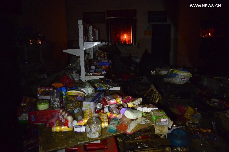 Goods scatter at a store in Hengjiang Town of Shicheng County, east China's Jiangxi Province, May 19, 2015. Seven people have been killed in landslides and house collapses caused by torrential rain in Jiangxi since Monday. The downpour has flooded 13,810 hectares of farmland, and destroyed hundreds of homes, forcing almost 10,000 to leave their homes. (Xinhua/Zhou Mi)