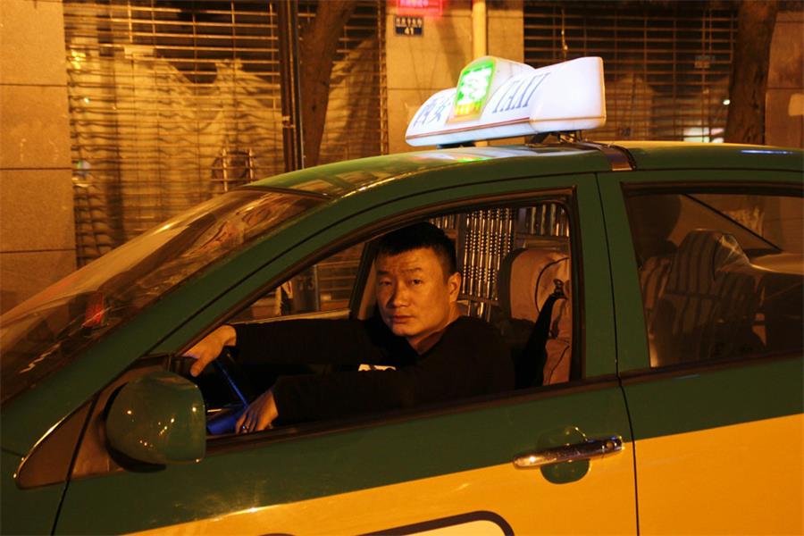 This photo shows a night-shift taxi driver. He just bought a pack of cigarettes before he got on the taxi. He planned to take two more passengers before the night shift was over.