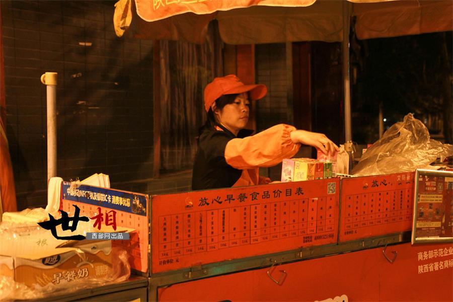 Han Xiaoting pushes a cart along the road at 3:30 a.m. She starts to prepare breakfast after she arrives at the location for her food booth. During the past two and more years, she worked from 3:30 a.m. to 9 a.m.