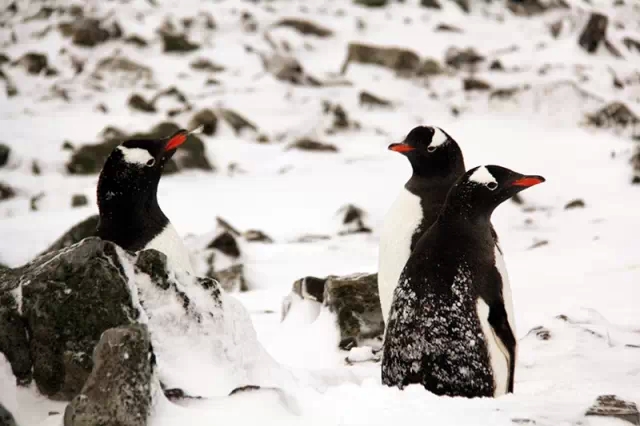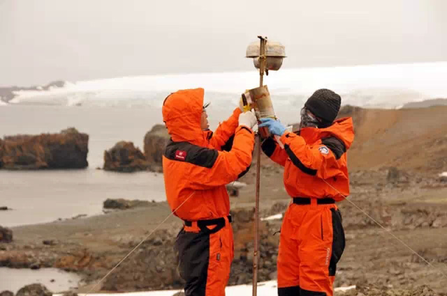 Ardley Island is home to penguins. As the tide ebbs, the scientists at the Antarctic Great Wall Station collect the penguin excrement.