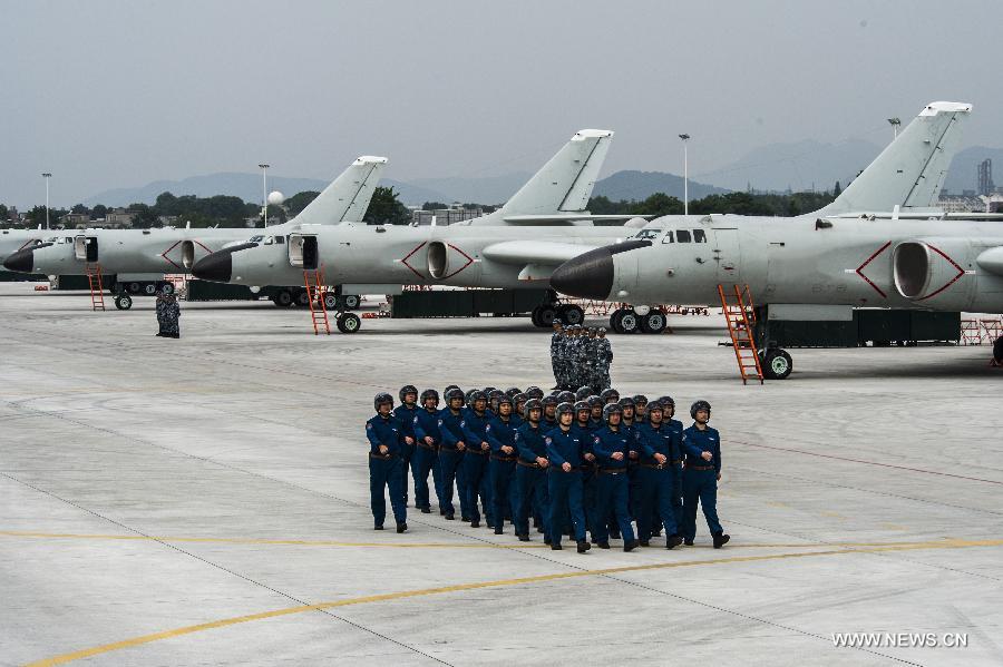 | File photo shows soldiers of the People's Liberation Army (PLA) Air Force participating in a training. Aircraft of the People's Liberation Army (PLA) Air Force flew over the Miyako Strait for the first time on May 21, 2015 for training in western Pacific, a military spokesperson said. (Xinhua/Zhang Haishen) |