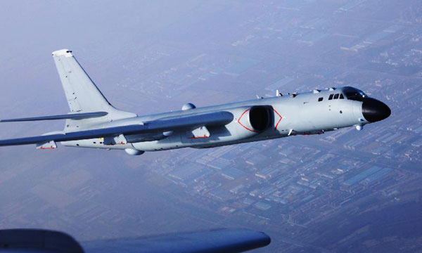 File photo shows a bombardment aircraft of the People's Liberation Army (PLA) Air Force participating in a training. Aircraft of the People's Liberation Army (PLA) Air Force flew over the Miyako Strait for the first time on May 21, 2015 for training in western Pacific, a military spokesperson said. (Photo: Xinhua/Tian Ning)