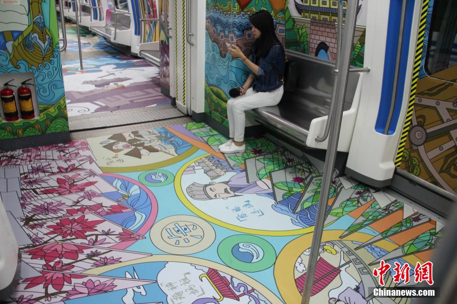 | A subway train themed with Maritime Silk Road is launched in Ningbo, east China’s Zhejiang province on May 20, 2015. It is also the first train decorated with hand painting in China. (Chinanews/Lin bo) |