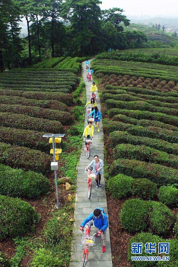 | Riding enthusiasts enjoy the scenery along the newly opened five-kilometer riding route in West Lake scenic area, Hangzhou, capital of east China's Zhejiang province, May 19, 2015. Tuesday is China's fifth National Tourism Day. Many scenic spots have taken certain measures and offered discounts to attract more tourists. (Xinhua/Li Zhong) |