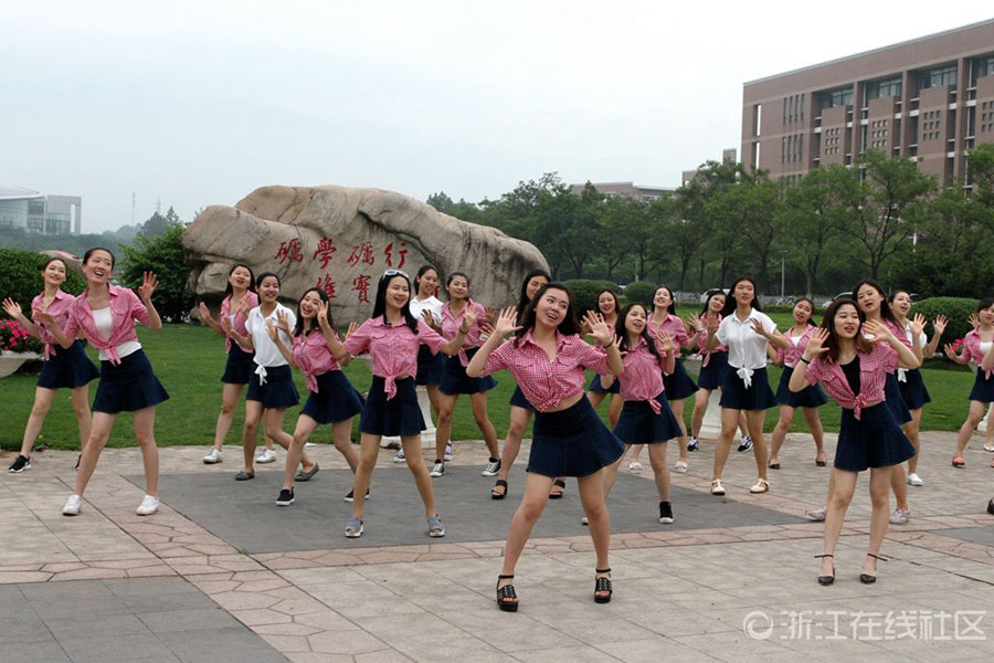 Upon graduation, students wearing various styles of clothes pose for photos to celebrate youth on the campus of Zhejiang Normal University.(Photo/zjol.com.cn)