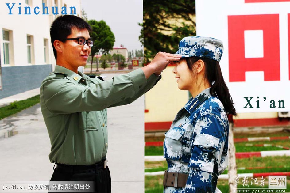 Cui Hao and his girlfriend Zhou Qian are soldiers in different military units. The long distance hasn't changed their love. They share their love and life through a group of combined photos. (Photo/jz.81.cn)