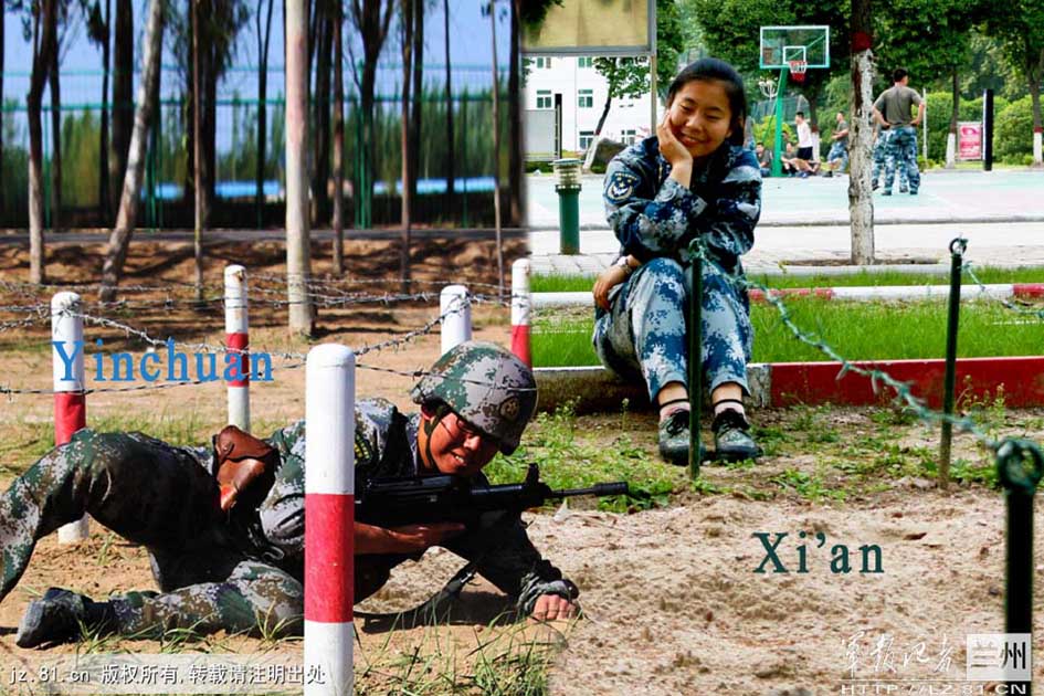 Cui Hao and his girlfriend Zhou Qian are soldiers in different military units. The long distance hasn't changed their love. They share their love and life through a group of combined photos. (Photo/jz.81.cn)