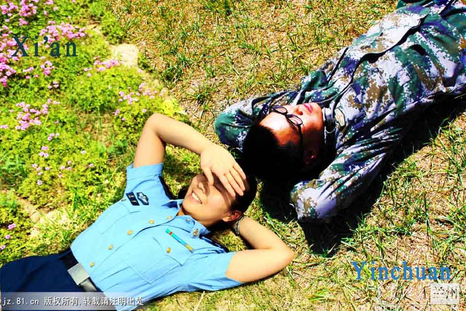 Cui Hao and his girlfriend Zhou Qian are soldiers in different military units. The long distance hasn't changed their love. They share their love and life through a group of combined photos. (Photo/jz.81.cn)