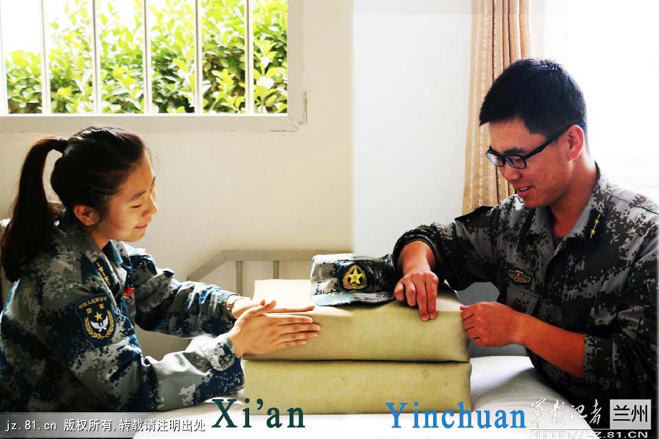Cui Hao and his girlfriend Zhou Qian are soldiers in different military units. The long distance hasn't changed their love. They share their love and life through a group of combined photos. (Photo/jz.81.cn)