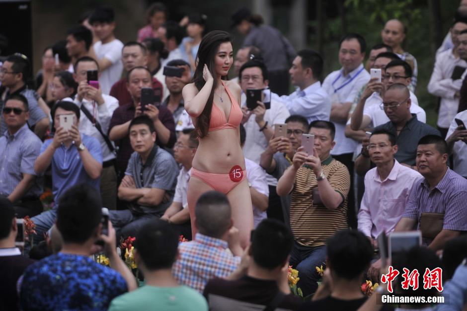 Charming contestants attend the swimsuit competition in a model contest in southwest China’s Chongqing on May 24, 2015. (Chinanews/Chen Chao)