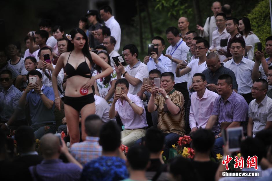Charming contestants attend the swimsuit competition in a model contest in southwest China’s Chongqing on May 24, 2015. (Chinanews/Chen Chao)